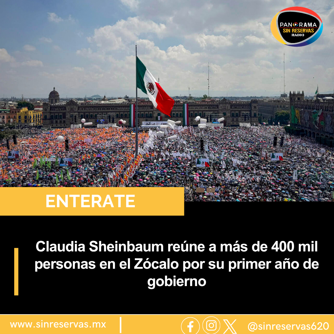 Ciudad de México.– El Gobierno capitalino reportó que más de 400 mil personas acudieron ayer al mitin encabezado por la presidenta de México, Claudia Sheinbaum, con motivo de su primer año de administración.