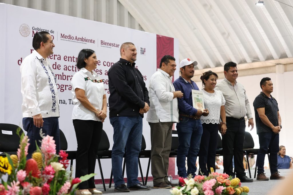 Lo anterior al encabezar junto a la subsecretaria de Inclusión Productiva y Desarrollo Rural de la Secretaría de Bienestar federal, Columba Jazmín López Gutiérrez, y la delegada federal en Tabasco de programas para el Bienestar, Lorena Méndez Denis, la primera entrega de constancias de aviso de actividades agroforestales para beneficiarios del programa Sembrando Vida federal en el municipio de Macuspana.
