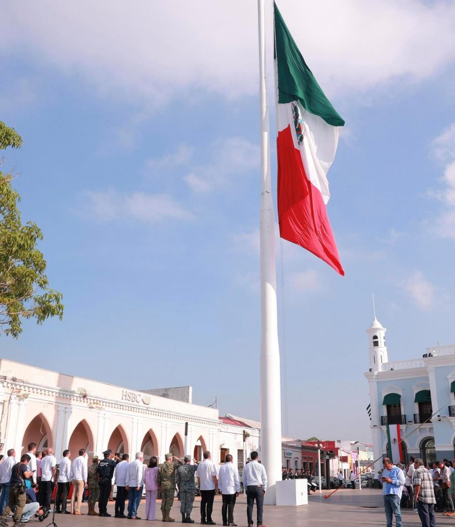 La presidenta municipal de Centro, Yolanda Osuna Huerta, acompañó al gobernador del estado, Javier May Rodríguez, en la ceremonia de Izamiento de la Bandera Monumental realizada en la Plaza de Armas de Villahermosa, con motivo de la conmemoración del Día de la Mujer Indígena en México.