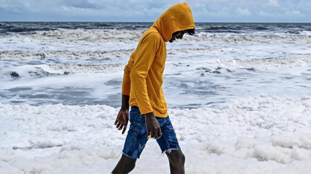 El fenómeno, que se extendió por aproximadamente 1.5 kilómetros entre Pattinapakkam y Srinivasapuram, ha generado preocupación entre las autoridades y especialistas ambientales. De acuerdo con reportes locales, la espuma se formó por la mezcla de aguas residuales sin tratar y altos niveles de fosfatos, arrastrados hasta el mar por las fuertes lluvias recientes.