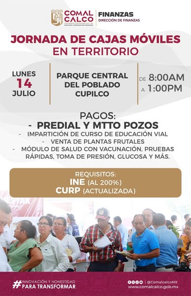 Con estas acciones, el gobierno municipal busca facilitar el cumplimiento de obligaciones fiscales, promover la participación comunitaria y brindar servicios que fortalezcan el bienestar de las familias comalcalquenses.