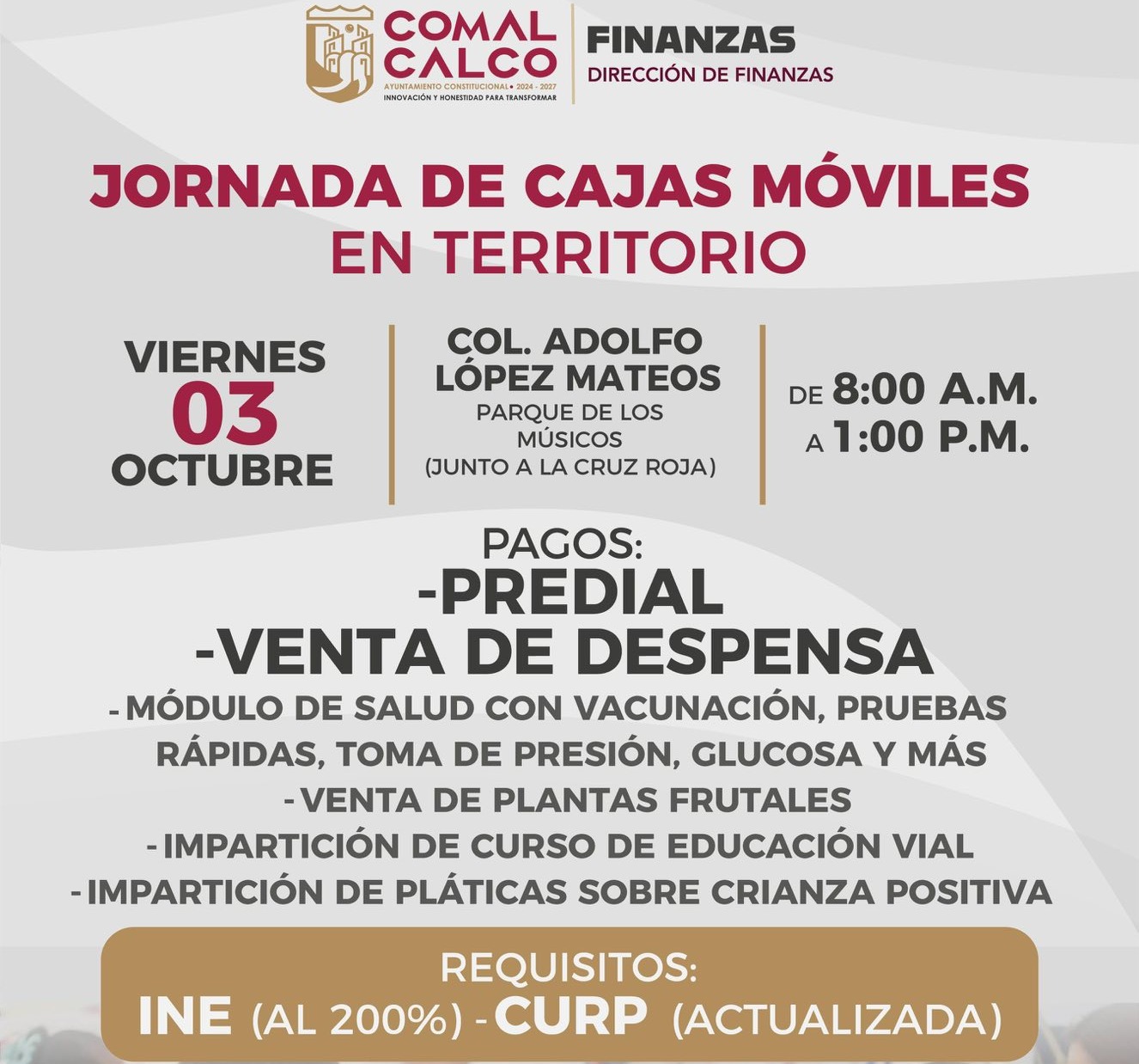El horario de atención será de 8:00 de la mañana a 1:00 de la tarde, tiempo en el que la ciudadanía podrá realizar sus pagos en las cajas receptoras móviles del Ayuntamiento.