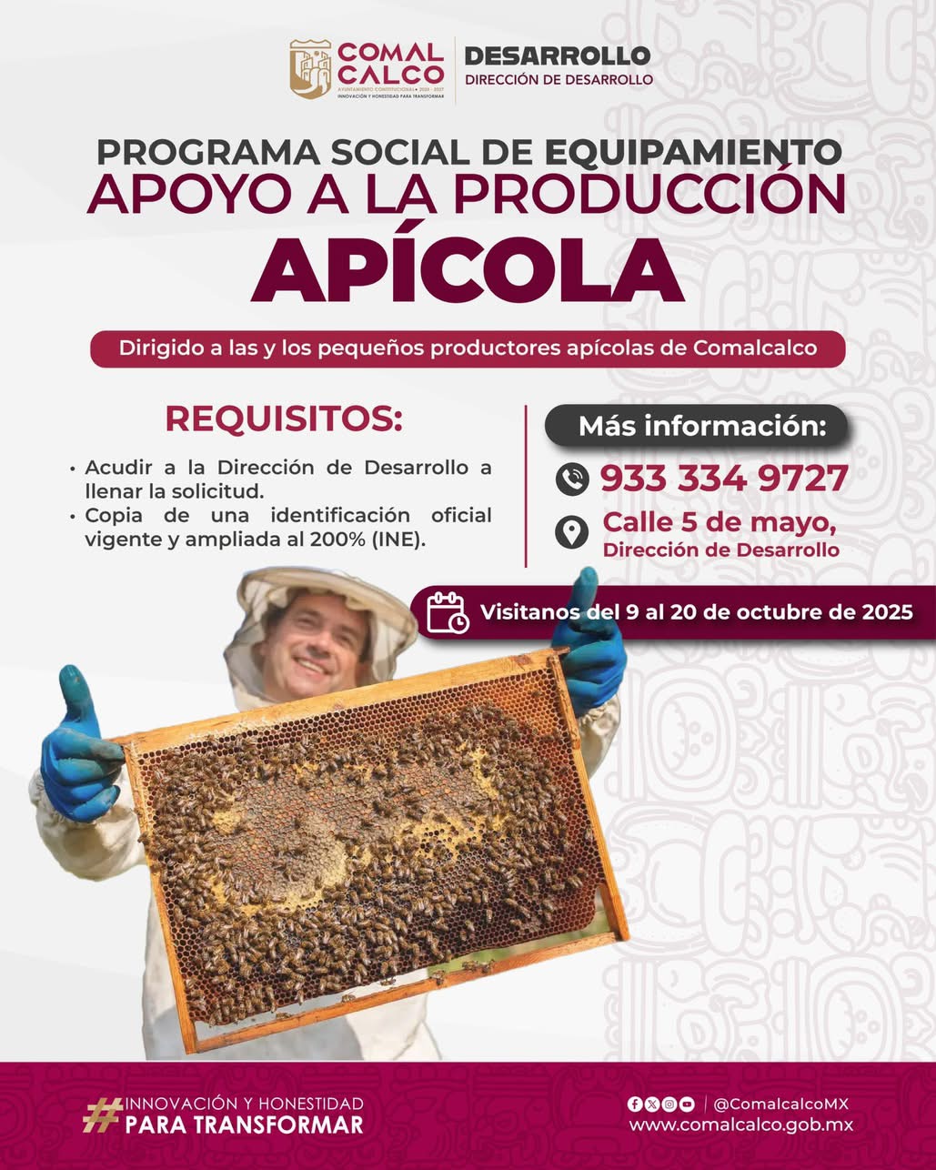 El Ayuntamiento de Comalcalco, a través de la Dirección de Desarrollo, invita a las y los pequeños productores a participar en los programas sociales de equipamiento para producción ganadera, apícola y acuícola.