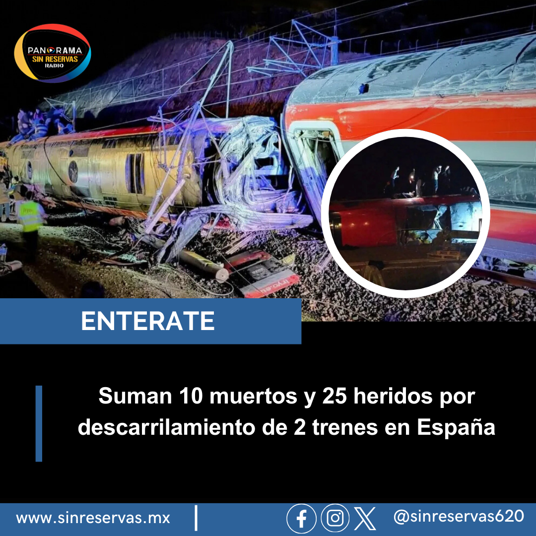Al menos diez personas perdieron la vida, unas 25 resultaron gravemente heridas y un número aún indeterminado permanece atrapado tras el descarrilamiento de dos trenes de alta velocidad en el municipio de Adamuz, en la provincia de Córdoba, España.