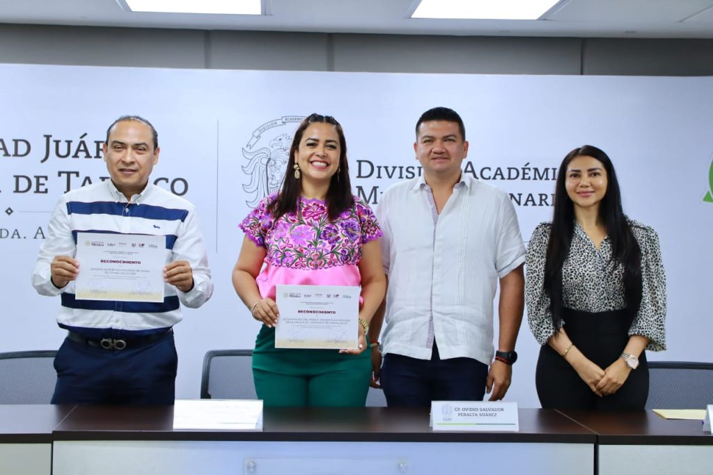 Al evento también asistieron Lida Izozorbe Meneses, directora del DIF Comalcalco; Hugo Adrián Barjau Madrigal, director de la División Académica Multidisciplinaria de Comalcalco (DAMC), y Manuel Alejandro Flores Barrada, enlace entre el DIF y la DAMC