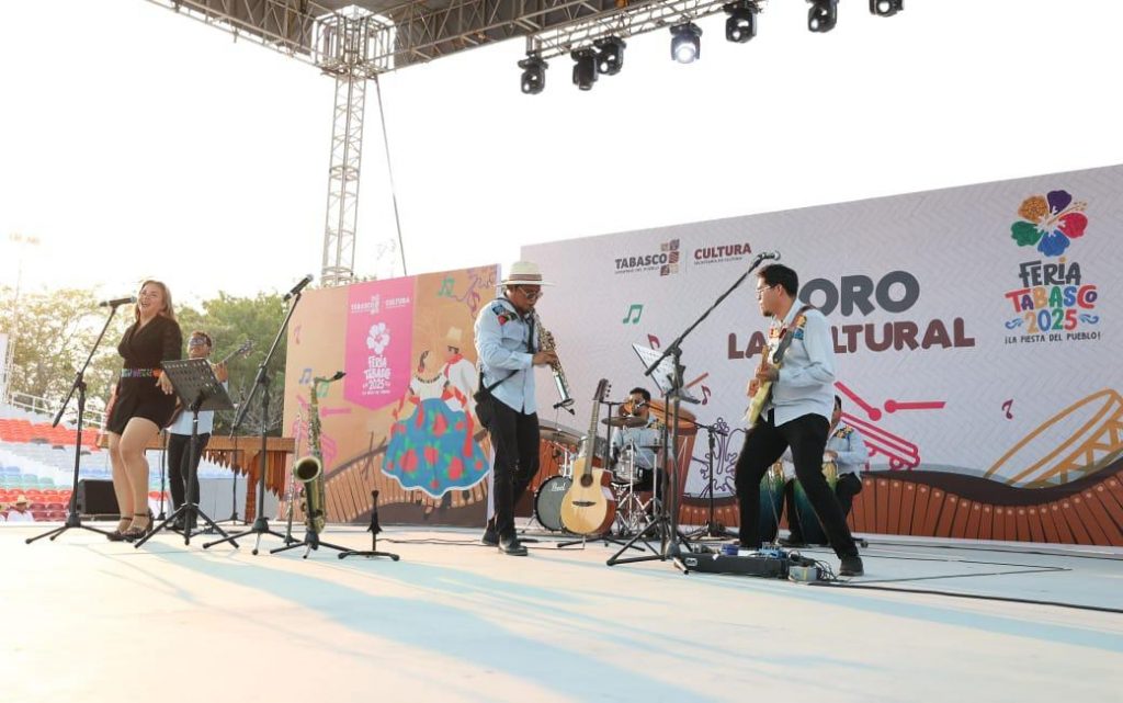 El zapateado, los carrizos, cueros y trombones resonaron en el Foro ‘La Cultural’ haciendo bailar a los asistentes a pulso de una noche tropical, danzonera y hasta de película, en el arranque de la gran Feria Tabasco 2025.