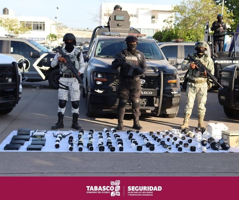 En un operativo conjunto, la Secretaría de Seguridad y Protección Ciudadana (SSPC) y la Fuerza Interinstitucional de Reacción Táctica (FIRT) Olmeca desmantelaron una red de videovigilancia ilegal en la zona de la Chontalpa, especialmente en Cárdenas.