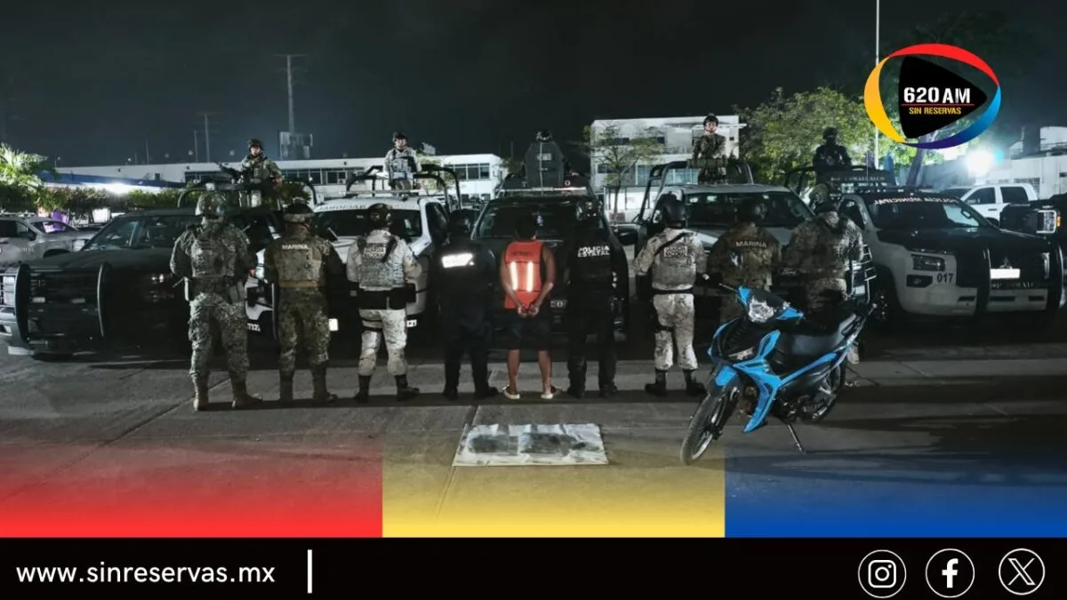 Elementos de las policías municipal y estatal, así como del Ejército, Marina y Guardia Nacional detectaron al masculino estacionado sobre una motocicleta; al notar la presencia de la autoridad intentó huir, pero fue alcanzado para una revisión.