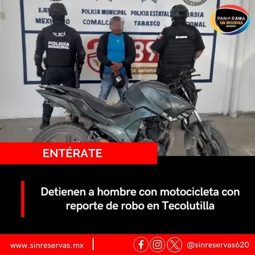 Detienen en Comalcalco a sujeto con motocicleta robada