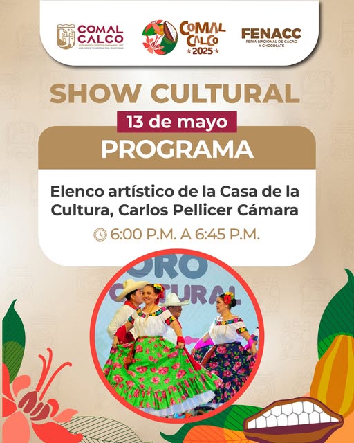 Vibra al compás de nuestras raíces con la presentación del Elenco Artístico de la Casa de la Cultura “Carlos Pellicer Cámara”, quienes darán vida al escenario con danza, color y tradición.