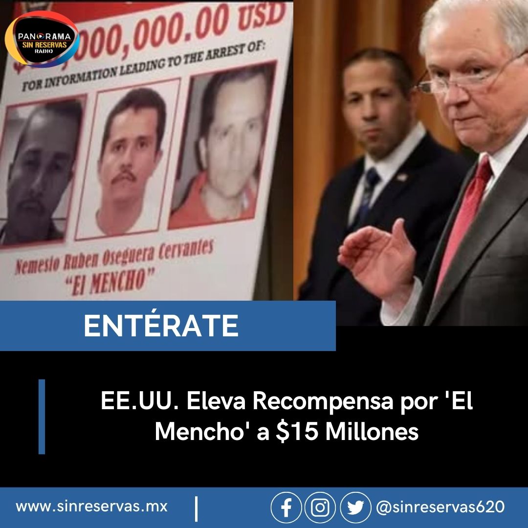 por información que conduzca al arresto de Nemesio Oseguera Cervantes, conocido como El Mencho, líder del Cártel Jalisco Nueva Generación (CJNG). Esta cifra refuerza el compromiso del gobierno estadounidense de capturar a uno de los capos más buscados y peligrosos del mundo.