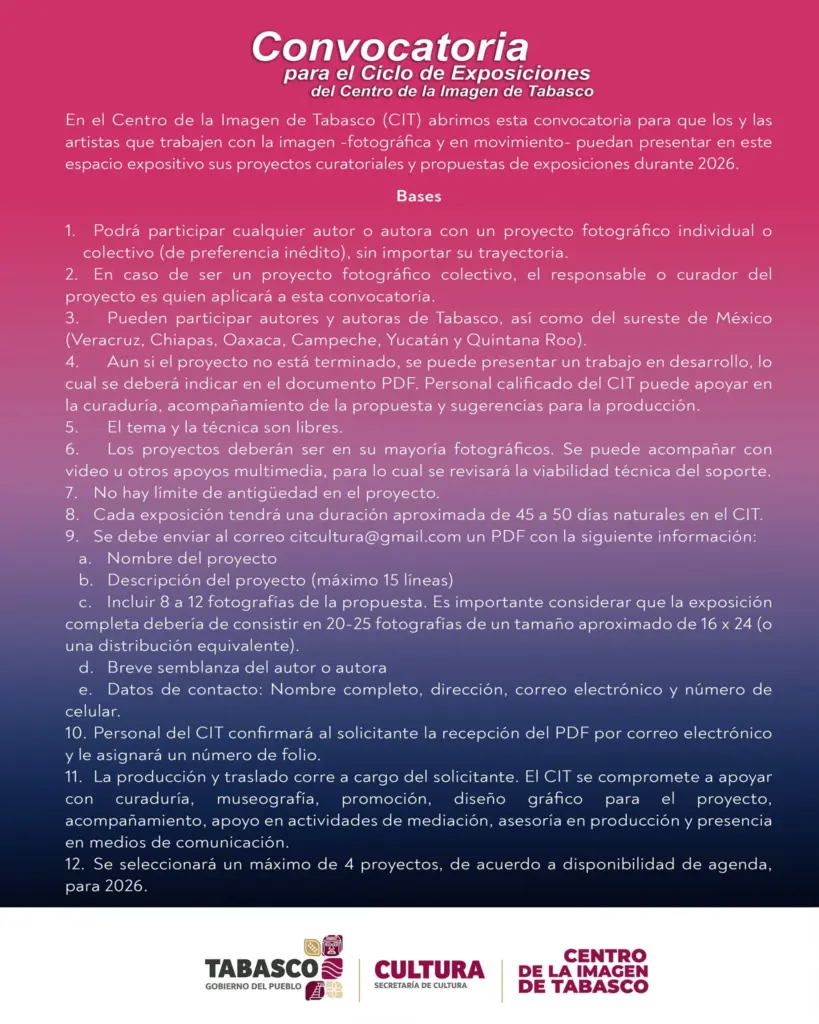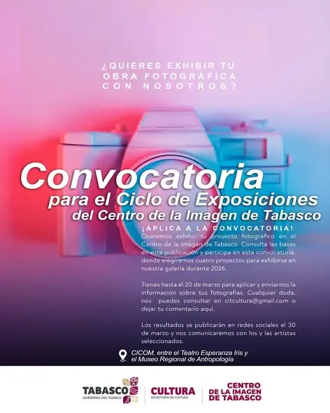 ¿Tienes un proyecto fotográfico que exprese tu forma de ver el mundo? El Centro de la Imagen de Tabasco abre su convocatoria para formar parte del Ciclo de Exposiciones 2026.