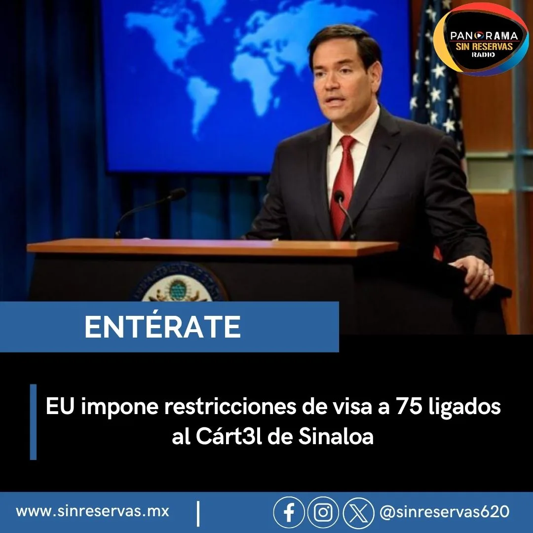El gobierno de Estados Unidos anunció la imposición de restricciones de visa a 75 individuos, entre familiares y asociados cercanos de personas vinculadas al Cártel de Sinaloa, como parte de su estrategia para combatir el narcotráfico.