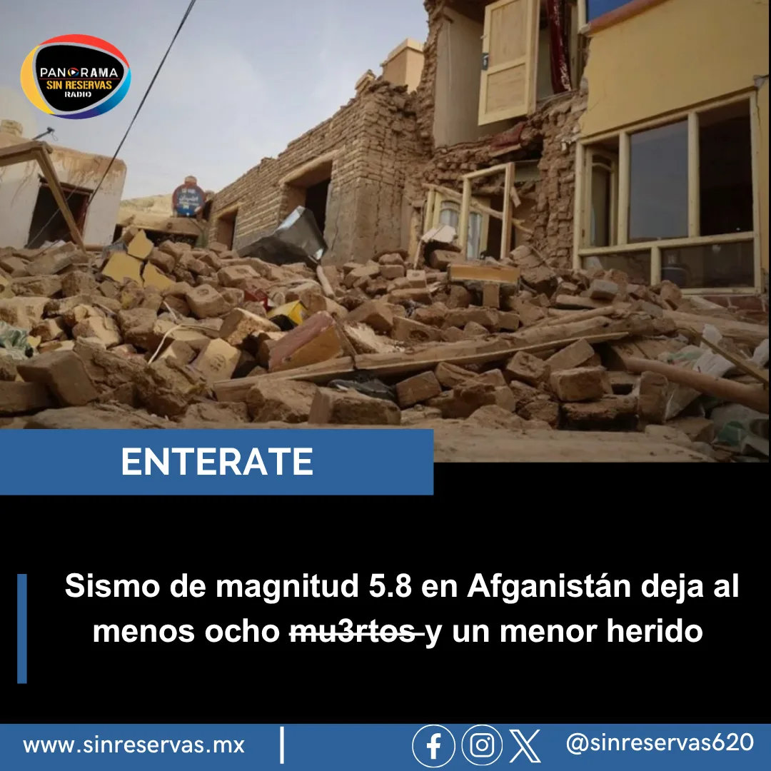 Al menos ocho personas murieron, un menor resultó herido y una más permanece desaparecida tras un sismo de magnitud 5.8 registrado la noche de este viernes en el noreste de Afganistán, informaron autoridades locales.