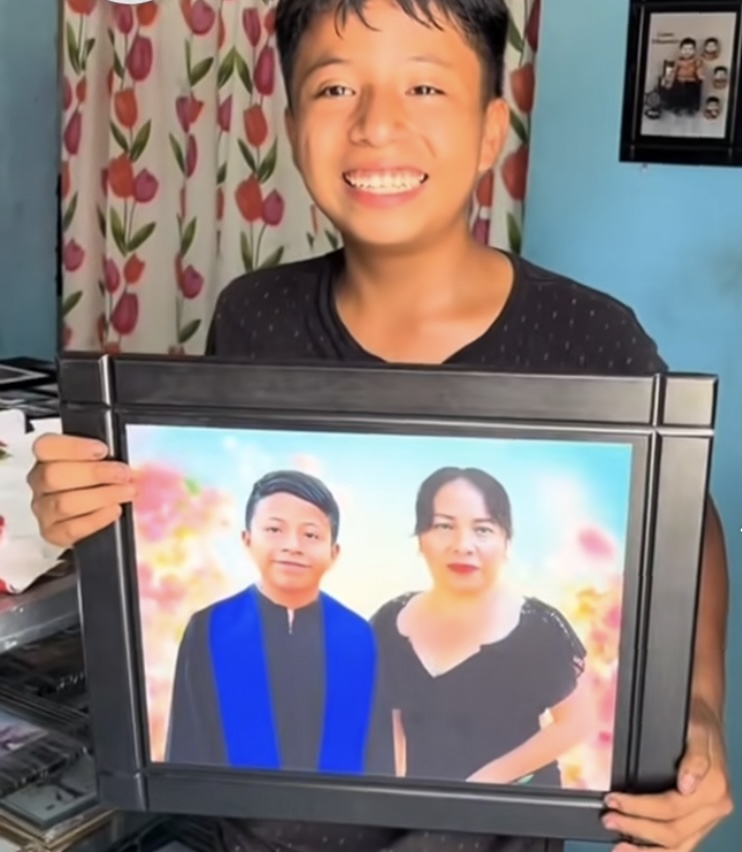 Su amigo —quien ahora también es su padrino de vida— le preparó una sorpresa inolvidable: una sesión especial con un fotoestudio, donde Dieguito pudo tomarse su foto de graduación con la imagen de su mamá a su lado. 🥹💐