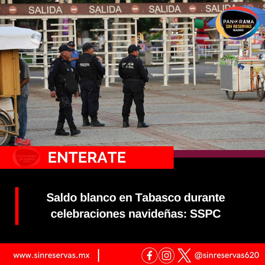 La Secretaría de Seguridad y Protección Ciudadana (SSPC) informó un saldo positivo durante las festividades de los días 24 y 25 de diciembre en el estado de Tabasco, como resultado de los operativos de vigilancia desplegados en todo el territorio estatal.
