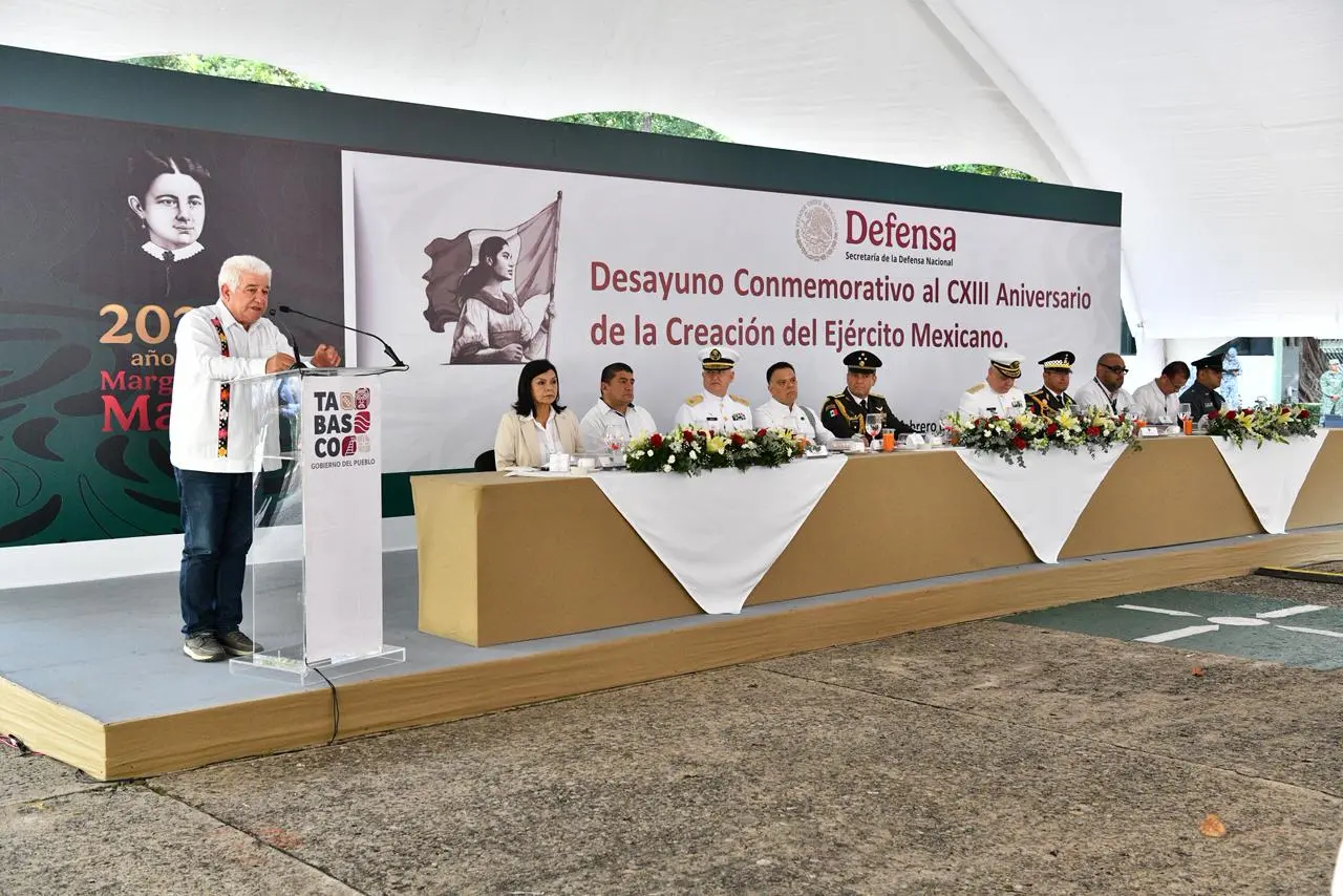 Al asistir en representación del Gobernador Javier May Rodríguez, como invitado especial, a la conmemoración del CXIII Aniversario de la creación del Ejército Mexicano, el secretario de Gobierno de Tabasco, José Ramiro López Obrador, reconoció la coordinación institucional y respaldo constante del Ejército Mexicano en momentos claves para la seguridad y bienestar de la población.