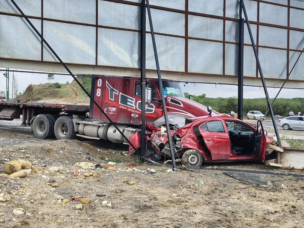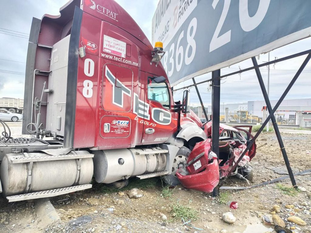 Juárez, NL.– La mañana de este lunes 15 de septiembre se registró un aparatoso accidente en el cruce de las avenidas Ruiz Cortines y Santa Isabel, en el municipio de Juárez, Nuevo León, donde un tráiler impactó a un automóvil y lo arrastró cerca de 20 metros hasta prensarlo contra la base de un anuncio panorámico.