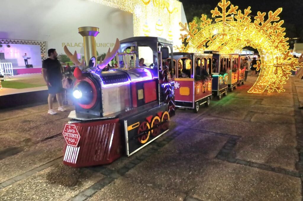 Las atracciones tradicionales también estuvieron presentes: el trenecito, el Nacimiento y los adornos iluminados que llenan de luz y color este espacio emblemático del municipio, invitando a los visitantes a vivir la magia de las fiestas de fin de año.