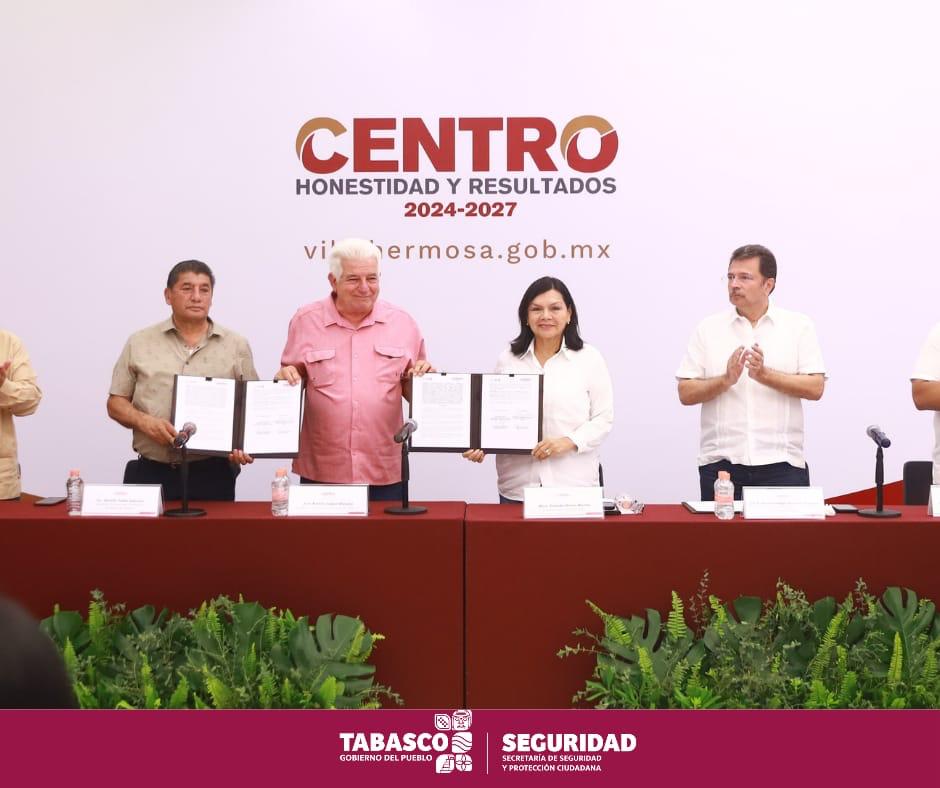 Para la prestación del servicio de seguridad pública en el municipio de Centro, se firmó un convenio de colaboración entre el Gobierno del Estado, representado por el secretario de Gobierno, José Ramiro López Obrador y el titular de la Secretaría de Seguridad y Protección Ciudadana (SSPC), Serafín Tadeo Lazcano, con la alcaldesa Yolanda Osuna Huerta.