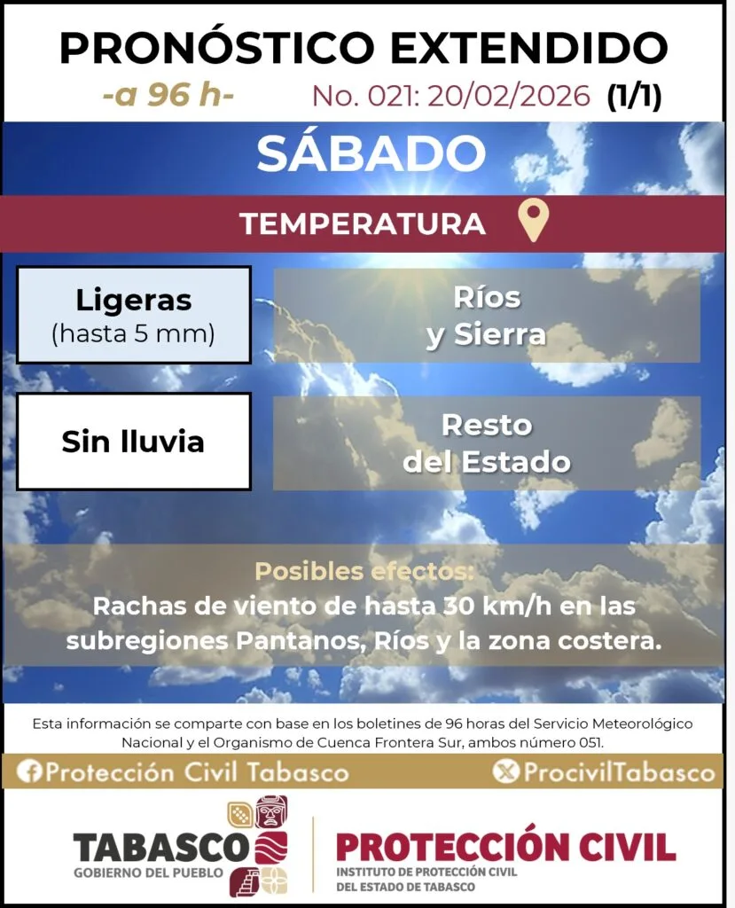 Se exhorta a la población a consultar el pronóstico extendido a 96 horas para mayor detalle y mantenerse informada a través de los canales oficiales.