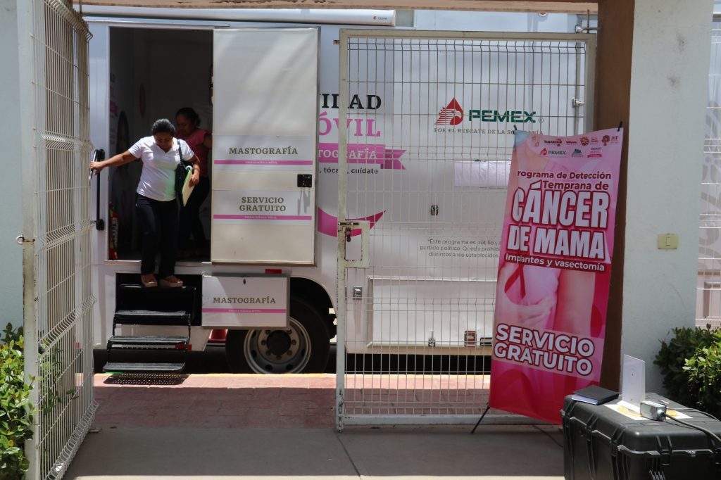 Señaló que para esta actividad se está empleando la Unidad de Mastografía de Pemex así como el mastógrafo portátil de la Secretaría de Salud, realizándose durante toda la jornada un total de 357 mastografías y exploraciones clínicas mamarias; además de que se brinda información y orientación para concientizarlas sobre la importancia que tiene la autoexploración para la detección oportuna del cáncer de mama.
