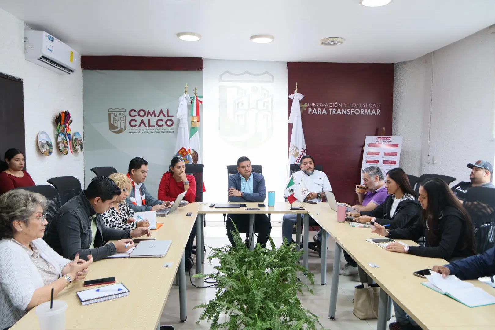 Durante el encuentro, se evaluaron avances y se reforzaron líneas de trabajo enfocadas en el desarrollo social, económico y de infraestructura del municipio, reafirmando el compromiso de la administración municipal de trabajar con responsabilidad, cercanía y resultados en favor del bienestar de las familias comalcalquenses.