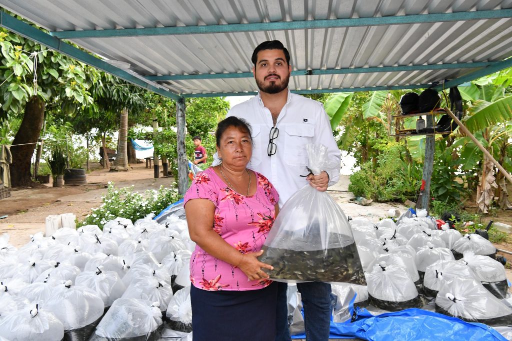 Posteriormente se trasladó hasta el malecón de la ciudad de Emiliano Zapata, donde apoyó a productores de las localidades El Avispero, Pochote, La Isla y la cabecera municipal. Asimismo, viajó a Villa Chablé, donde también entregó alevines y alimento.