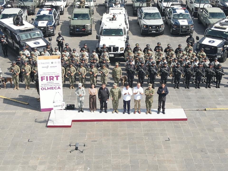 El Gobernador Javier May Rodríguez dio el banderazo de inicio a las operaciones de la Fuerza Interinstitucional de Reacción Táctica (FIRT) Olmeca, un agrupamiento de élite conformado por mujeres y hombres de corporaciones estatales y federales altamente capacitados y entrenados, que con vocación de servicio y lealtad al pueblo combatirá al crimen, en el marco del replanteamiento de la estrategia de seguridad.