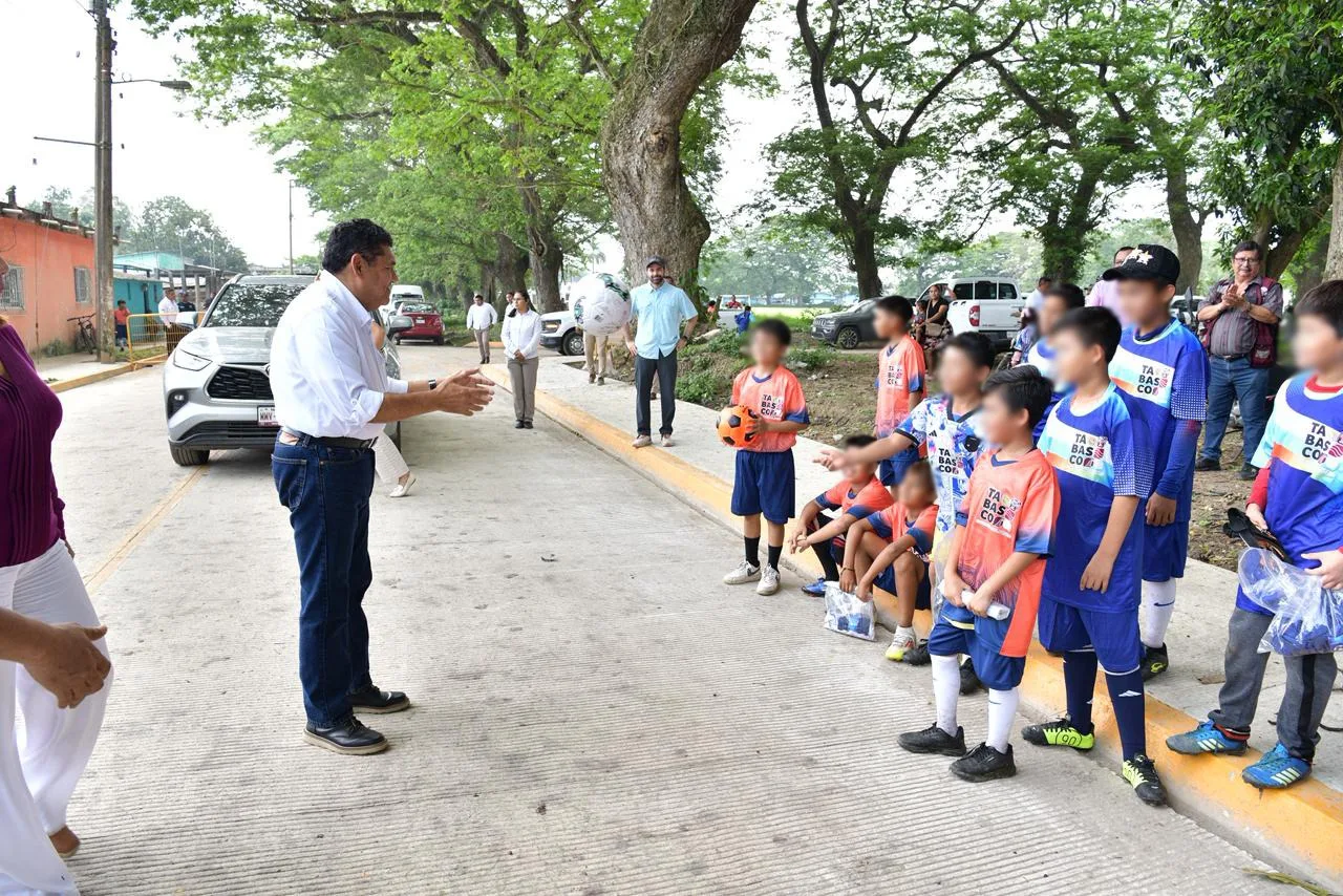 Junto al secretario de Ordenamiento Territorial y Obras Públicas, Daniel Arturo Casasús Ruz y habitantes de la comunidad, resaltó que a la fecha se han entregado uniformes a mil equipos de niñas, niños y adolescentes que practican algún deporte, “también estamos impulsando la cultura, se les entrega los uniformes, el equipo, los balones. Estamos avanzando porque queremos que ellos, que son el presente y futuro, salgan adelante, por eso no es gasto, es inversión”.