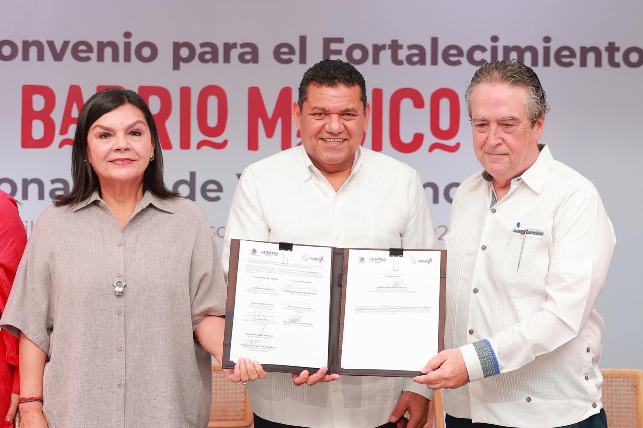 De manera conjunta, el gobernador Javier May Rodríguez, la alcaldesa Yolanda Osuna Huerta y el presidente de la Asociación Ciudadana del Centro Histórico, Roberto Díaz Rodríguez, firmaron un Convenio General de Colaboración para el Fortalecimiento del Barrio Mágico y Centro Antiguo de Villahermosa. Con este acuerdo, se emprenderán acciones que fortalezcan la vocación turística, cultural, económica y social de la zona.