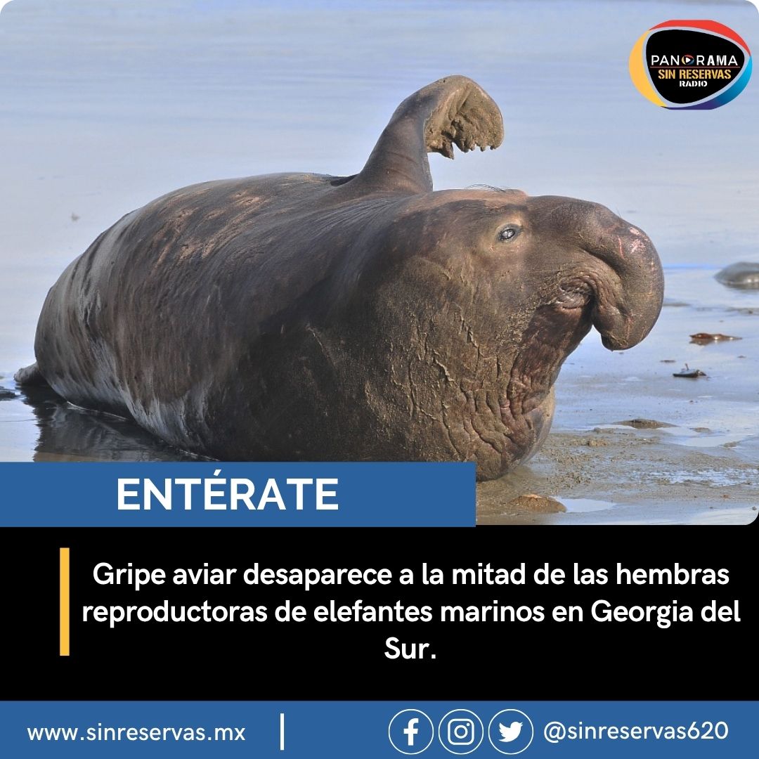 Gripe aviar desaparece a la mitad de las hembras reproductoras de elefantes marinos en Georgia del Sur.