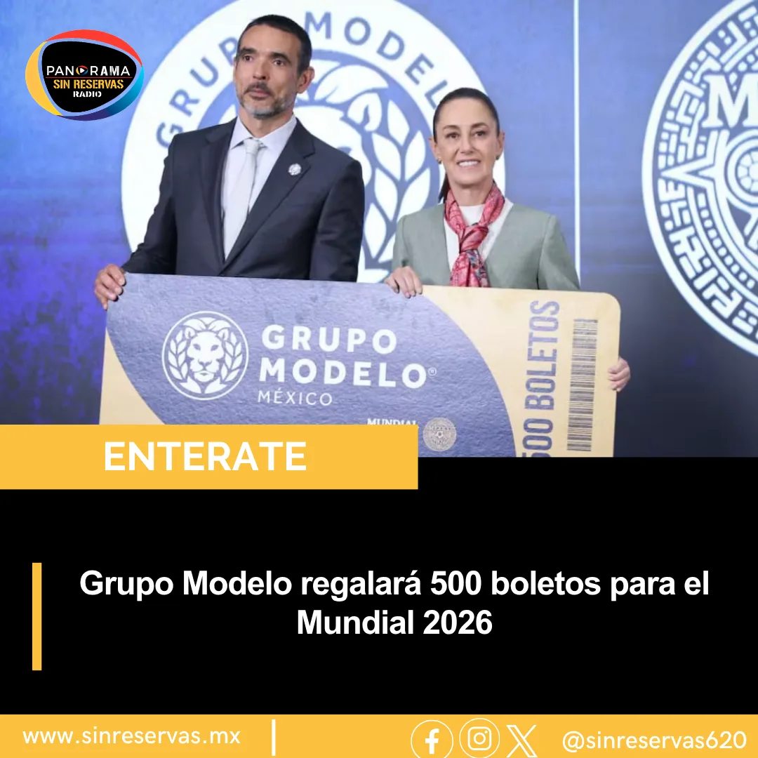 La presidenta de México, Claudia Sheinbaum, anunció que Grupo Modelo regalará 500 boletos para la Copa Mundial de la FIFA 2026. Las entradas serán entregadas a personas mayores de edad que resulten ganadoras del “Mundial Social”, torneo organizado por el Gobierno Federal.
