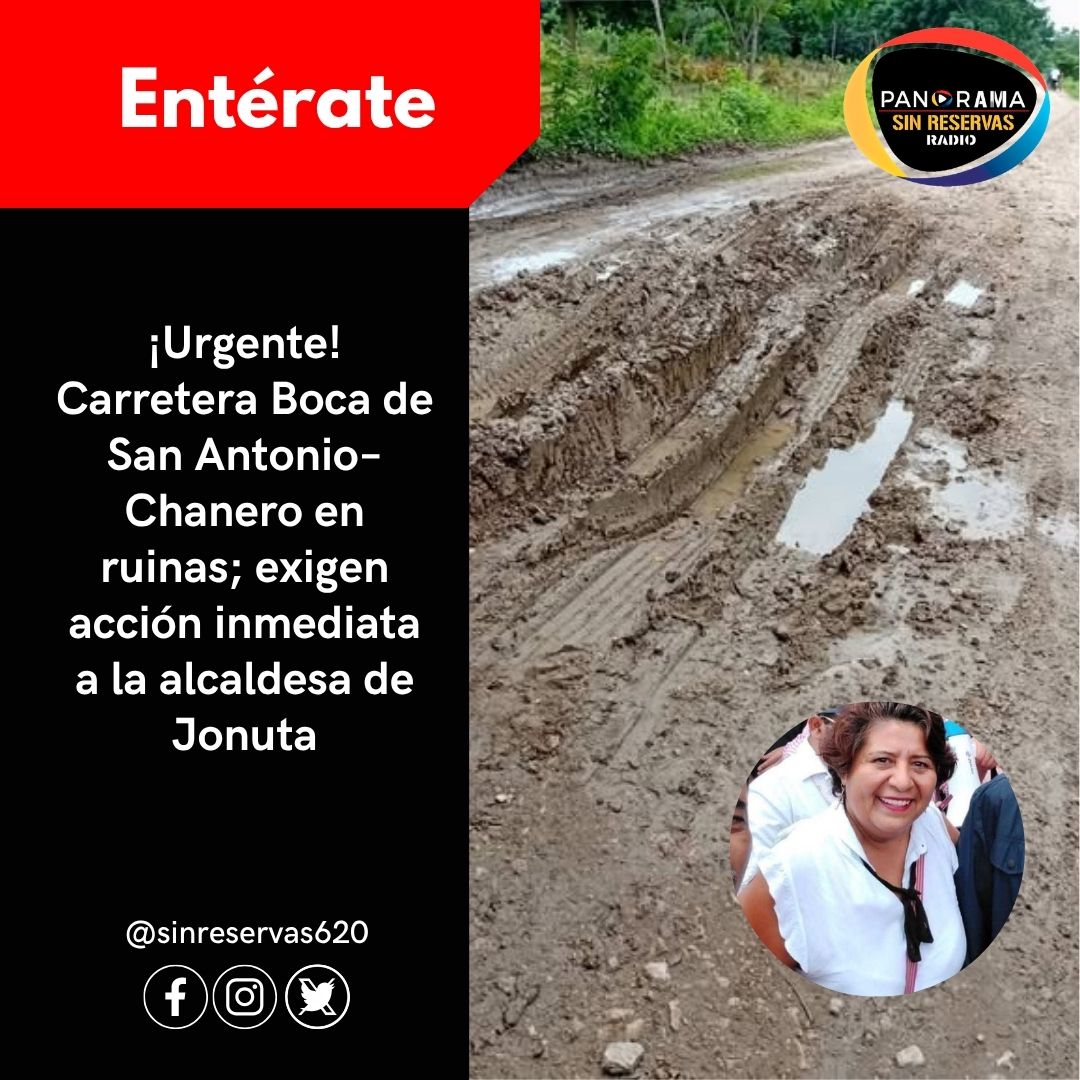 Los ciudadanos del municipio de Jonuta, Tabasco, lanzaron un llamado urgente a la presidenta municipal, María Soledad Villamayor Notario, para que atienda el grave deterioro de la carretera que conecta Boca de San Antonio con el poblado Chanero.