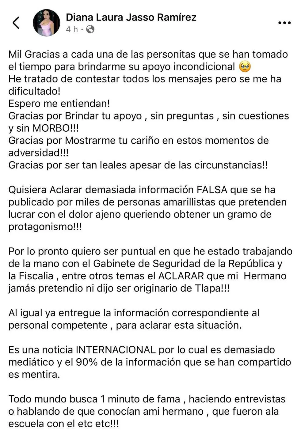 Se trata de Diana Laura Jasso Ramírez, quien reaccionó ante la atención mediática y el impacto internacional que generó el caso.