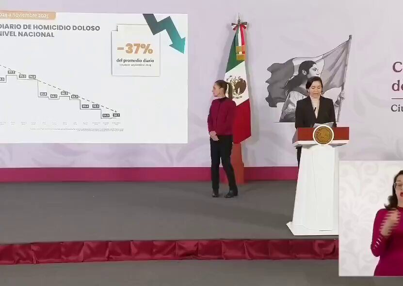 De acuerdo con Marcela Figueroa, titular del Secretariado Ejecutivo del Sistema Nacional de Seguridad Pública (SESNSP), el promedio diario de asesinatos pasó de 86.9 a 54.7 entre el último mes del entonces presidente Andrés Manuel López Obrador y noviembre de 2025. Esto representa 32 homicidios menos cada día.