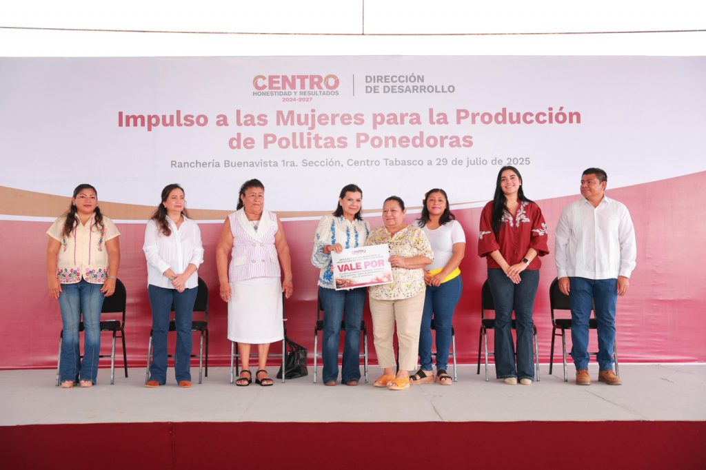 La alcaldesa de Centro, Yolanda Osuna Huerta, encabezó la entrega de paquetes de pollitas ponedoras a mujeres de la ranchería Buenavista 1ra. sección, como parte de las acciones para mejorar la alimentación en los hogares y fortalecer la economía familiar.
