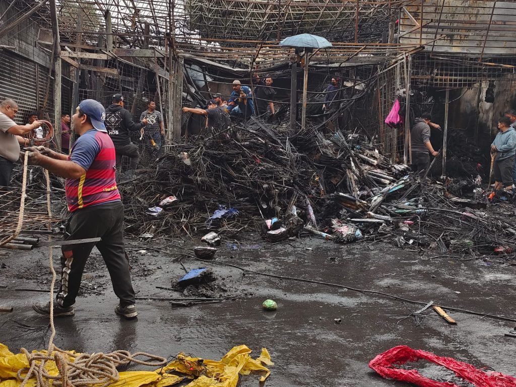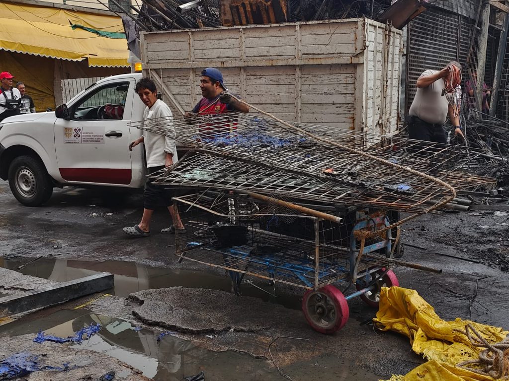 Los comerciantes afectados piden apoyo para recuperar sus fuentes de ingreso, mientras personal de Protección Civil y Bomberos realiza labores de enfriamiento y remoción de escombros en el área afectada.
