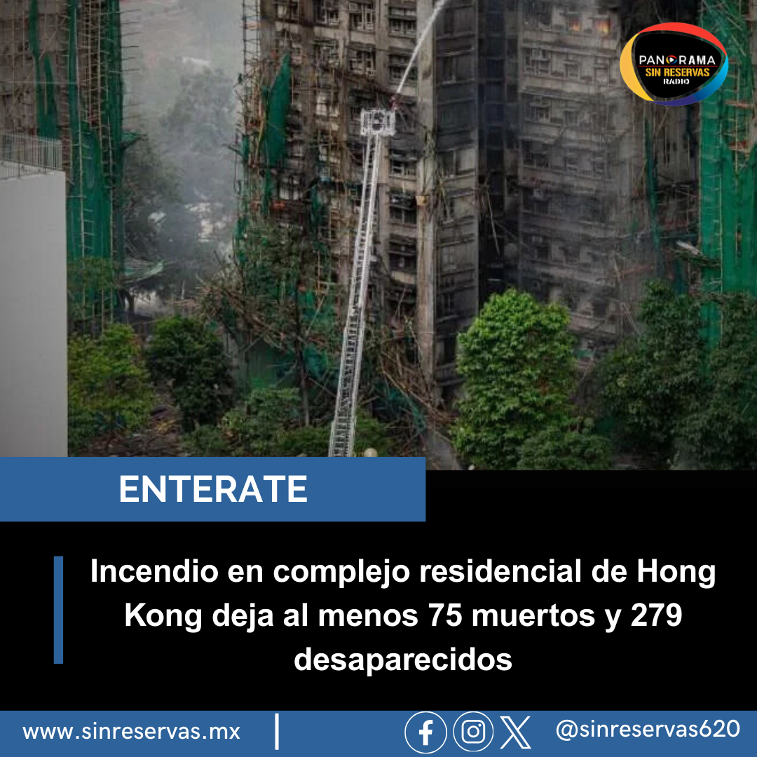 Un devastador incendio que afectó a siete edificios de un complejo residencial en Hong Kong ha dejado al menos 75 personas fallecidas, 76 heridas, entre ellas 11 bomberos, y 279 desaparecidas, según las últimas cifras actualizadas este jueves por los servicios de emergencia. Las operaciones de rescate continúan mientras otros 62 residentes siguen atrapados dentro de los inmuebles.