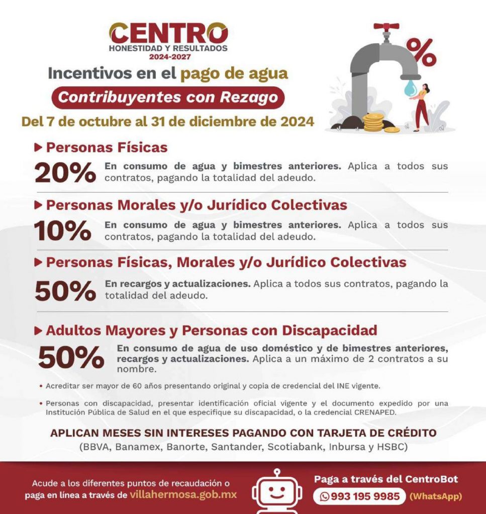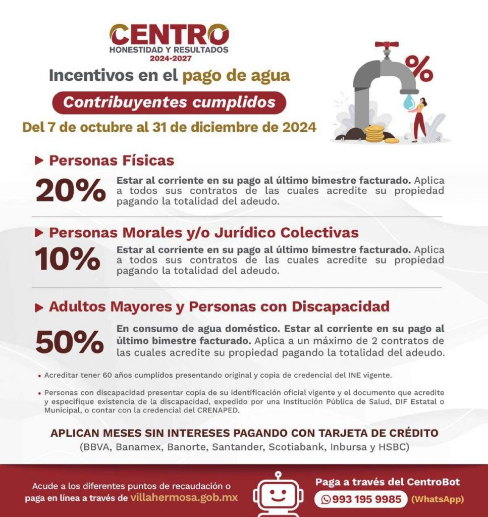 Incentivos en el pago de predial y agua en octubre