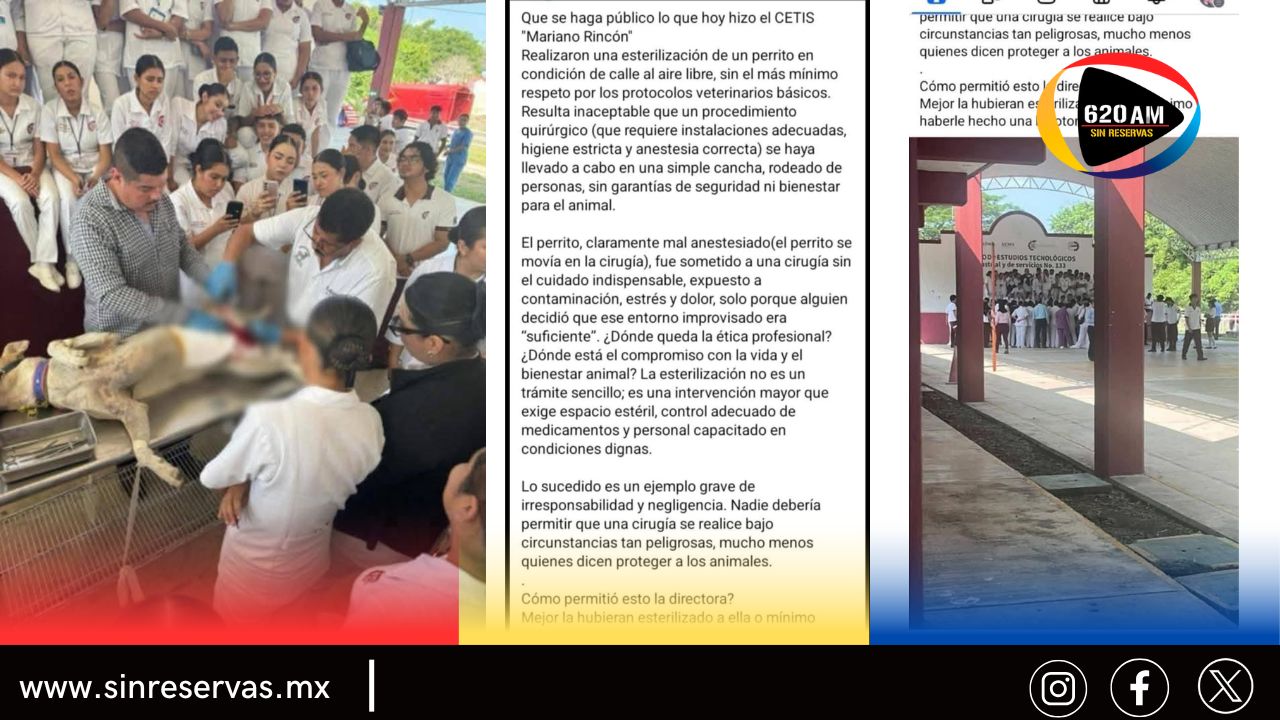 Lo ocurrido en el CETIS “Mariano Rincón”, en el estado de Veracruz, ha generado una fuerte indignación entre defensores de los animales y la comunidad en general. En el plantel se practicó una esterilización a un perro en situación de calle al aire libre, sin cumplir con las condiciones mínimas de higiene, seguridad ni bienestar animal.
