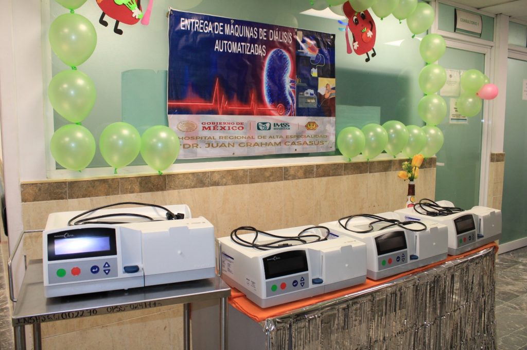 Con la finalidad de brindar a pacientes en terapia de remplazo renal por enfermedad renal crónica, una mejor calidad de vida, este miércoles autoridades de los Servicios Públicos de Salud IMSS Bienestar hicieron entrega en calidad de comodato, de cuatro máquinas de diálisis peritonial automatizada, a cuatro pacientes que, bajo la supervisión del personal de Enfermería, se realizarán este procedimiento en su domicilio.