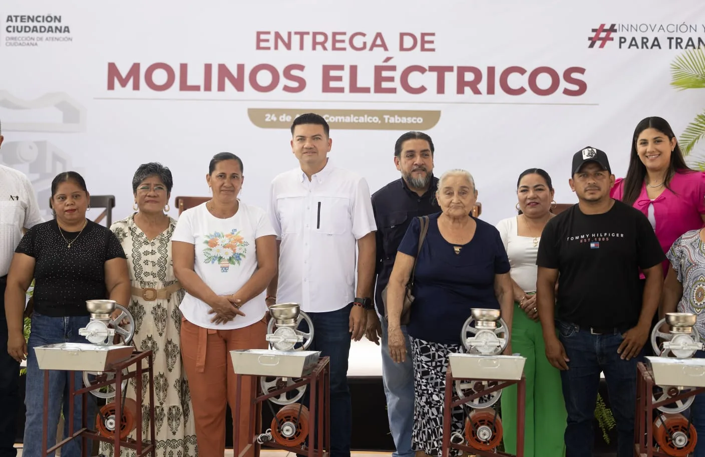 El alcalde Ovidio Peralta Suárez dio inicio al Programa de Molinos Eléctricos con la entrega de 800 de esos aparatos, una acción de alto sentido social que beneficiará directamente al mismo número de familias de 99 comunidades y colonias de Comalcalco, alcanzando con ello a cerca del 70 por ciento del territorio municipal.