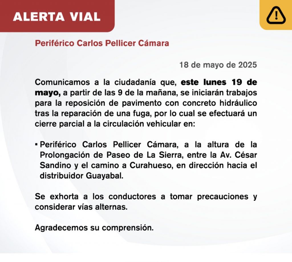 Inician trabajos de reposición de pavimento en el Periférico Carlos Pellicer