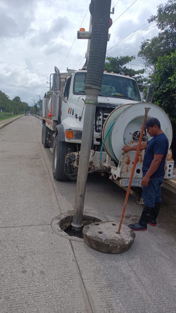 Por otro lado, en ciudad Tecolutilla se llevaron a cabo trabajos de limpieza de registros, pozos y rejillas en diversas calles, por medio de una “almeja”, dispositivo que se introduce en el drenaje para extraer basura o cualquier otro objeto que obstruya el ducto.