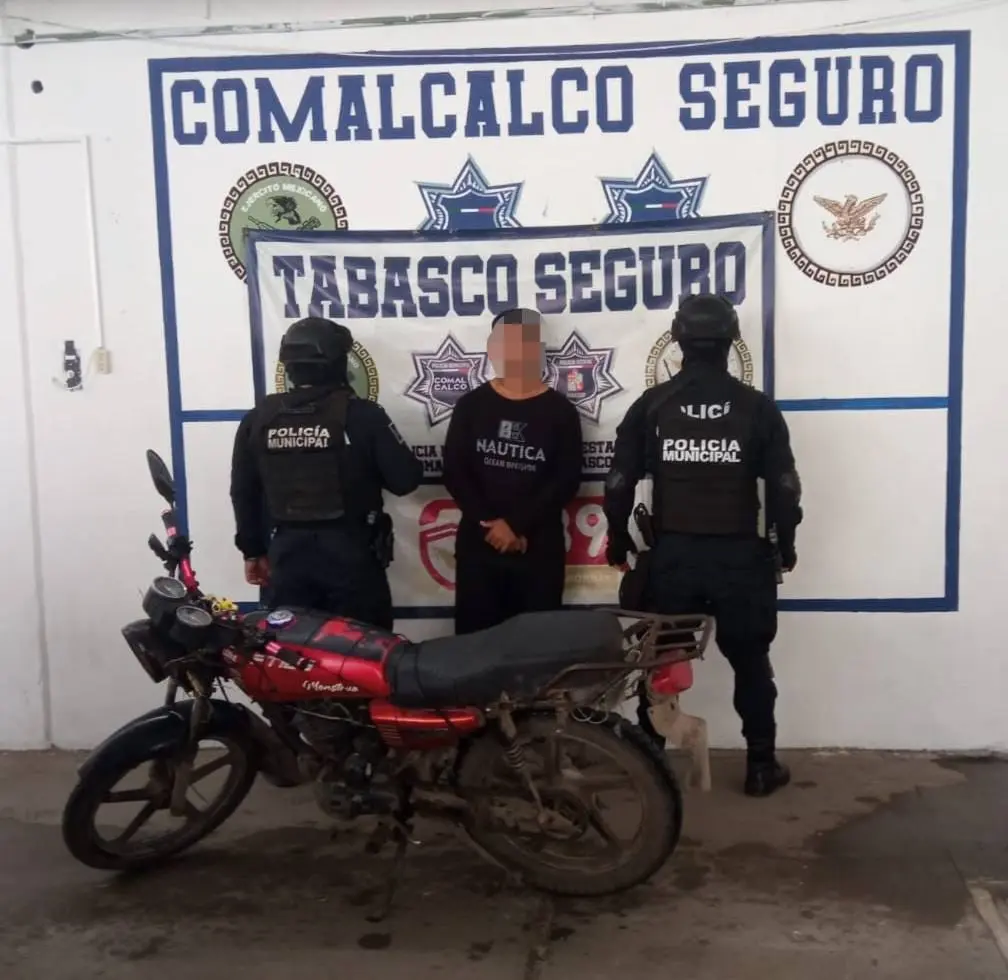 Elementos de la Dirección de Seguridad Pública detuvieron en la cabecera municipal de Comalcalco a una masculino transportando combustible de manera ilegal.