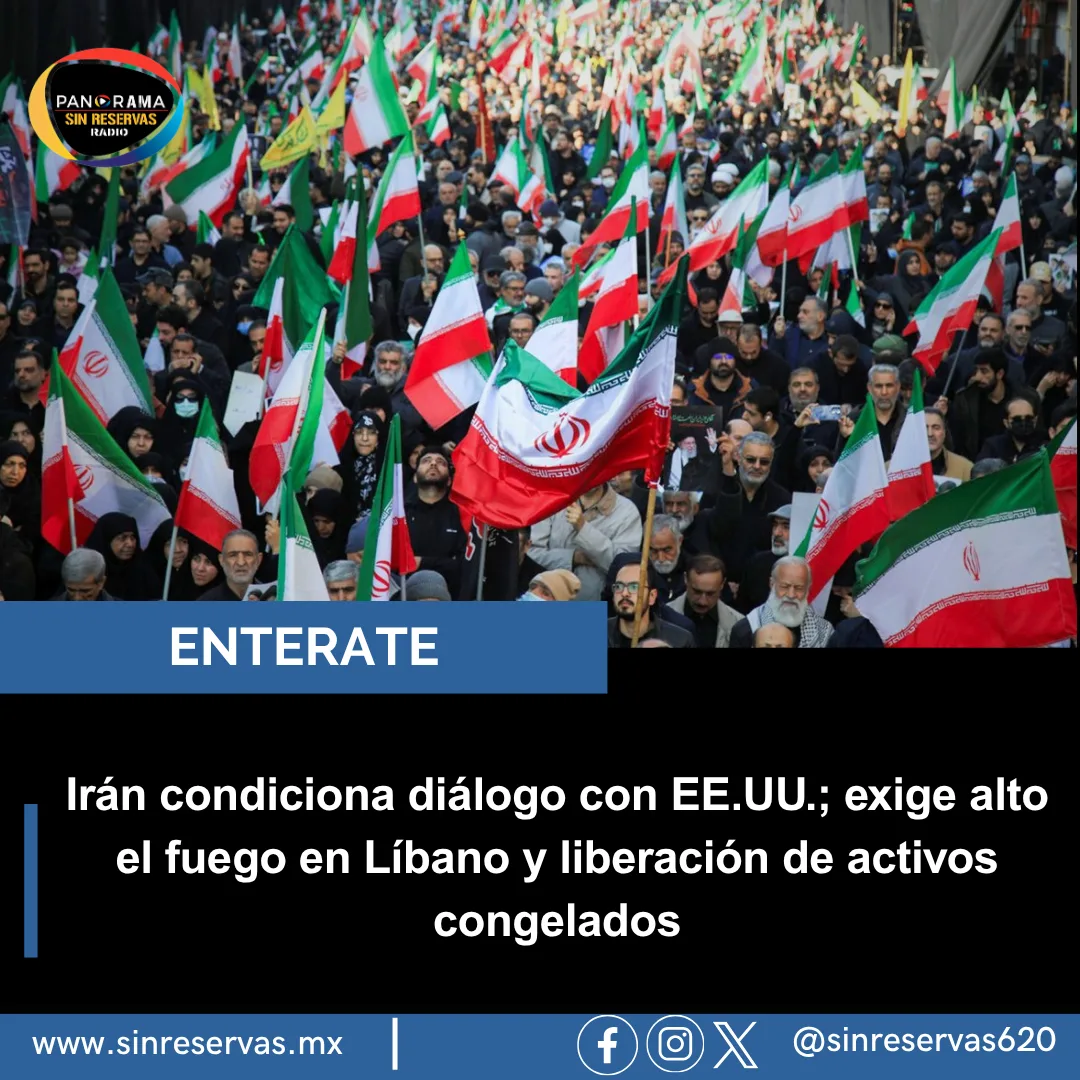 Irán condiciona diálogo con EE.UU.; exige alto el fuego en Líbano y liberación de activos congelados