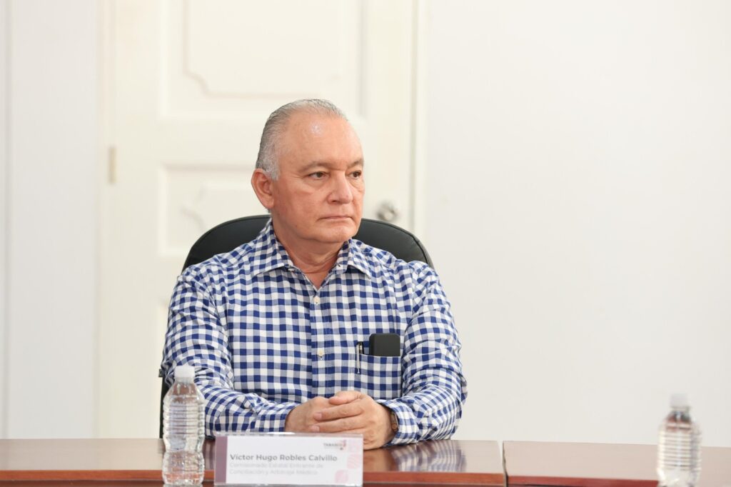 El gobernador de Tabasco, Javier May Rodríguez, tomó protesta al doctor Víctor Hugo Robles Calvillo como nuevo Comisionado Estatal de Conciliación y Arbitraje Médico, en un acto que contó con la presencia de la doctora Odet Sarabia González, titular de la Comisión Nacional de Arbitraje Médico (CONAMED).