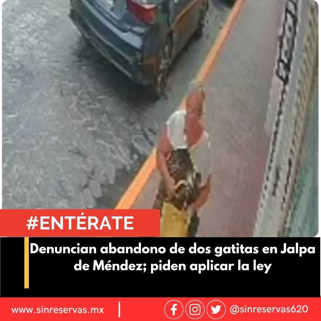 Un nuevo caso de abandono animal fue denunciado en el municipio de Jalpa de Méndez, donde una persona fue captada dejando a dos gatitas en la vía pública, hecho que generó indignación entre ciudadanos.