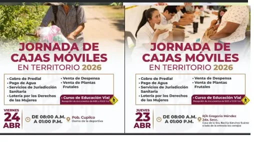 El Ayuntamiento de Comalcalco comparte las comunidades donde se llevarán a cabo las Jornadas de Cajas Móviles en Territorio 2026 del 23 al 24 de abril.